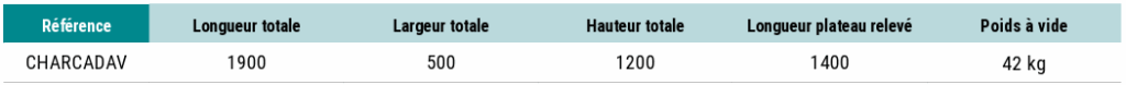 > Chargement aisé grâce au plateau relevable et à l’absence d’aspérité au fond du chariot